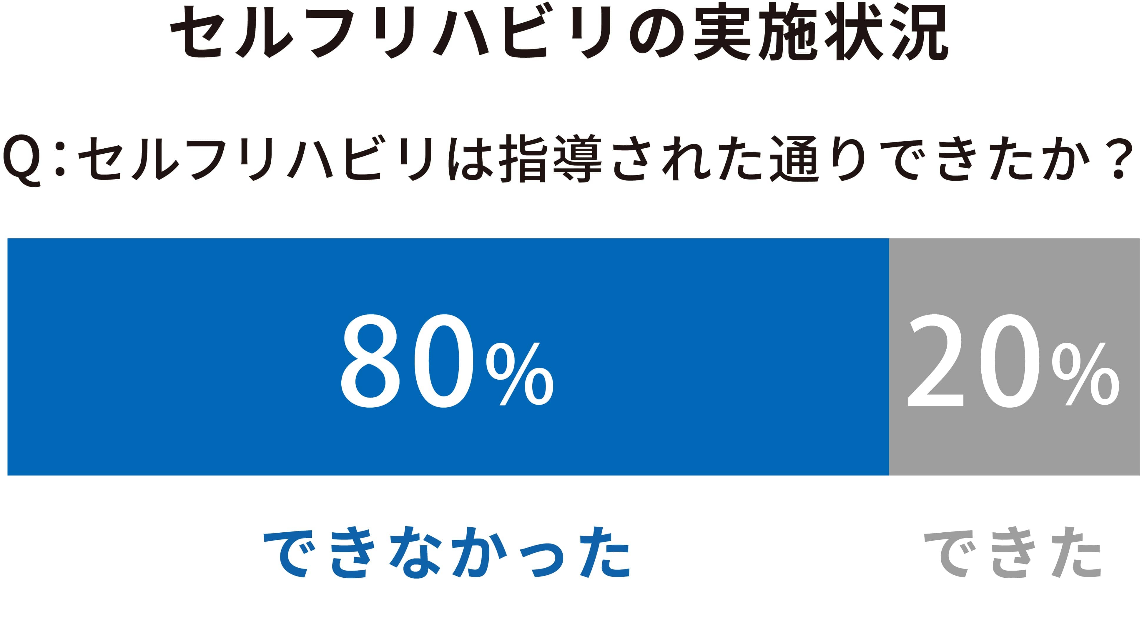 しかし、患者の80%は実際にセルフリハをきちんとやっていないのが現状です